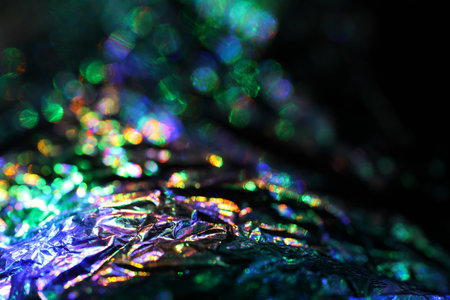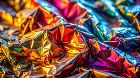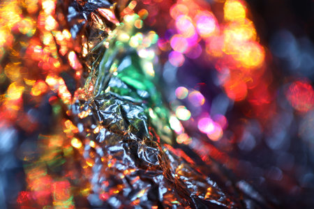 Glittering shards of metallic foil reflecting in the light creating a rainbow of shimmering hues
