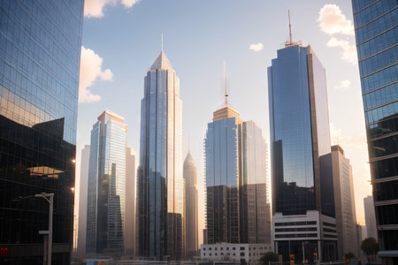 Panoramic skyline and buildings with many glass windows - ai