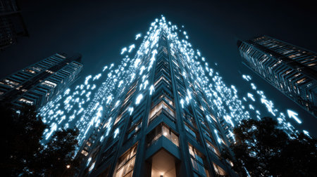 Skyscrapers illuminated at night: urban landscape and architectural design