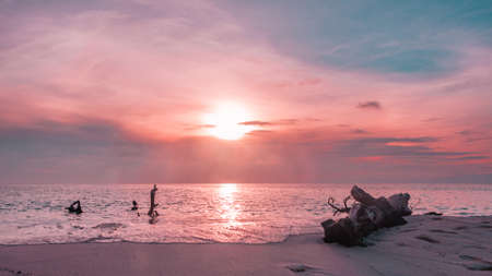 Sunset on the beach, atmospheric mood of sea view concept photography
