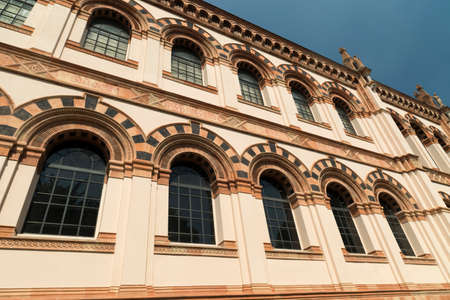 Many windows on facade of the urban historic building front view, Stockholm, Sweden
