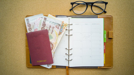 close up of calendar on the table, planning for business meeting or travel planning concept