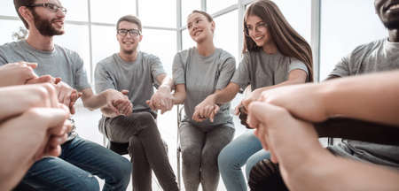close up. a group of diverse young people holding hands