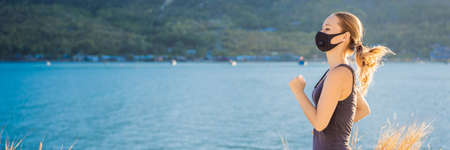 Runner wearing medical mask, Coronavirus pandemic Covid-19.
