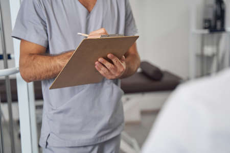 Doctor standing before his patient during medical consultation