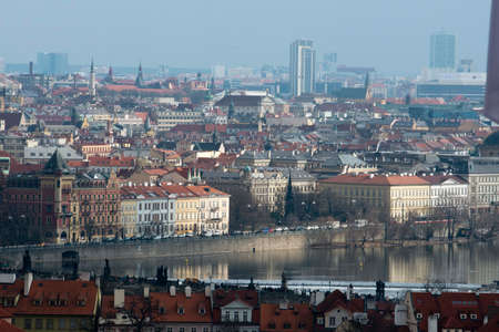 panoramic view at Prague red roofs