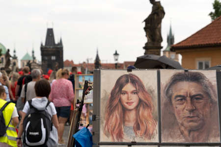 PRAGUE, CZECH REPUBLIC - JULY 15 2019 - Charles Bridge Medieval town famous landmarks of the city are full of tourist in summer time