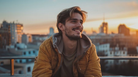 Portrait of a smiling and carefree man sitting on a rooftop generative ai