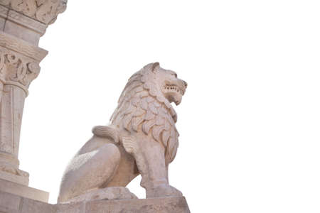 a large stone lion. Fishermen's Bastion is a tourist center. Hungary. Budapest