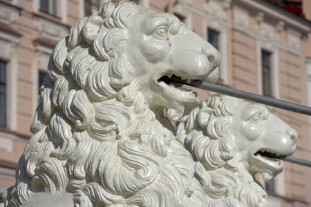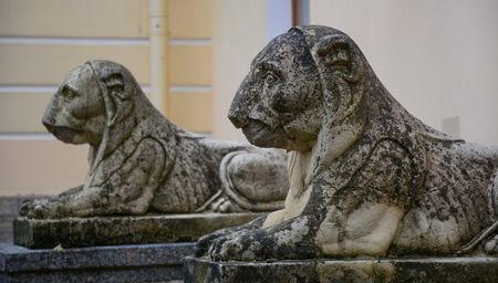 Lion statues at ancient palace in Saint Petersburg, Russia.