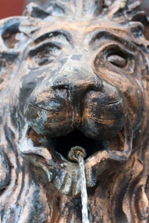 Bronze bas-relief of a lion head from the gate of basilica in Lyon, France