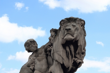 the lion sculpture in bronze at the Admiralty embankment in St. Petersburg