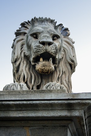 Lion stone statue on the side Buda of Budapest, Hungary.