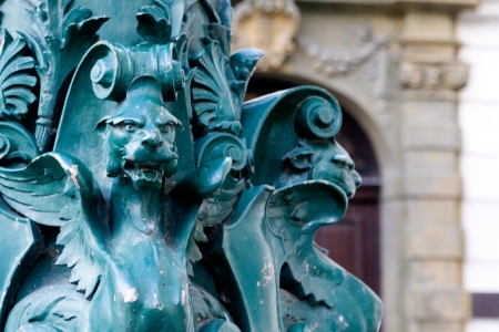 Old well with lions in Festetics Castle garden closeup. Keszthely, Hungary.
