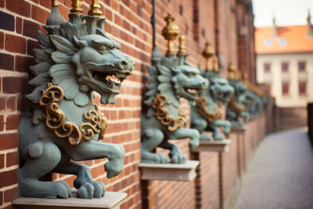 Copper Lion Sculptures and Blazon: Captivating Art Adorns Frederiksborg Castle in Hillerod, Denmark