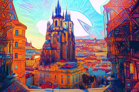 Cityscape of Prague, Czech Republic. Famous Old town hall, Church Of Our Lady Before Tyn, St. Vitus Cathedral