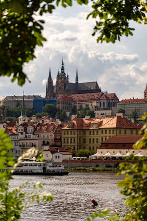 Prague Czech Republic April 26, 2022. Architecture of the city. Panorama of the city on the Weltawa River.