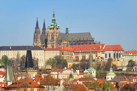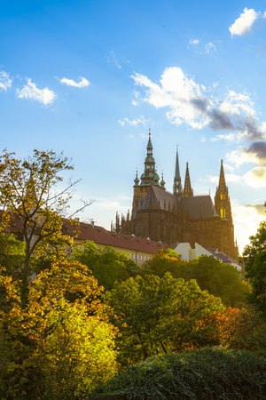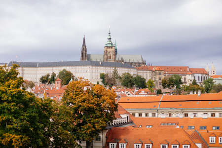 Beautiful Prague cityscape in autumn. St. Vitus Cathedral, Czech Republic