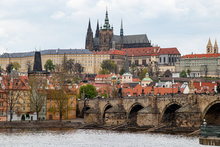 Prague, Czech Republic- November 12, 2017: View to the St. Vitus Cathedral over river Vltava in Prague, Czech Republic