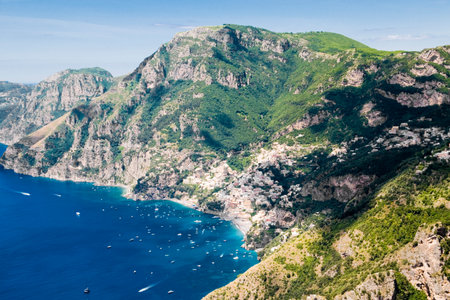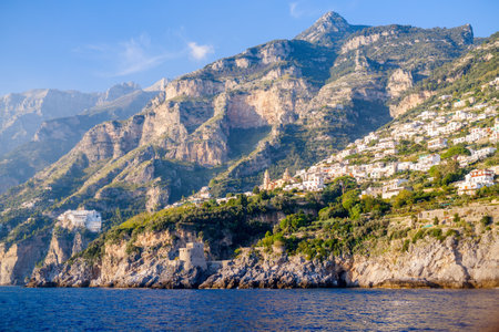 beautiful view of the coast of Positano, Amalfi Coast, Mediterranean Sea, travel to Italy