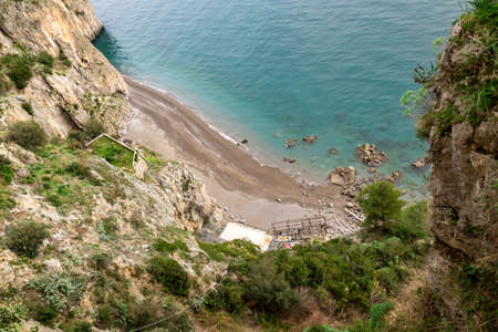 Suggestive view of one of the bays of the Amalfi coast. Landscape. views of the rocky hills overlooking the sea and wild vegetation.