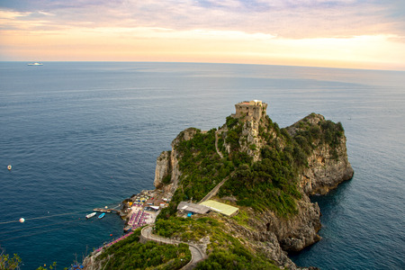 Landscape of Amalfi coast and scenic Conca dei Marini bay at sunset