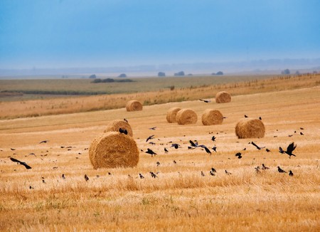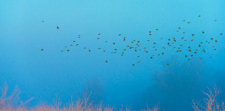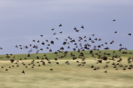 Flock of Black Birds in Flight in Saskatchewan Canada