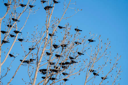 Blackbirds in Tree Springtime Saskatchewan Canada Multiple