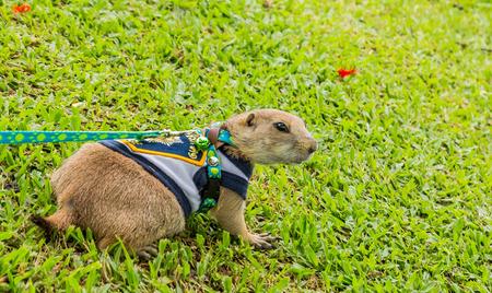 black tailed prairie dog (Cynomys ludovicianus) stand on green grass