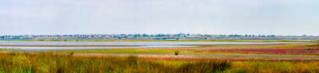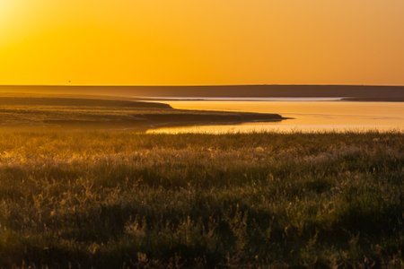 Yellow reeds in the autumn at a salt lake in southern Russia