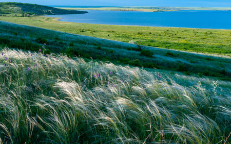 Ukrainian feather grass steppe, Bunchgrass species (Stipa capillata), steppe landscape of southern Ukraine