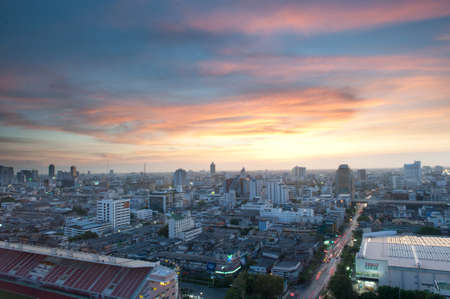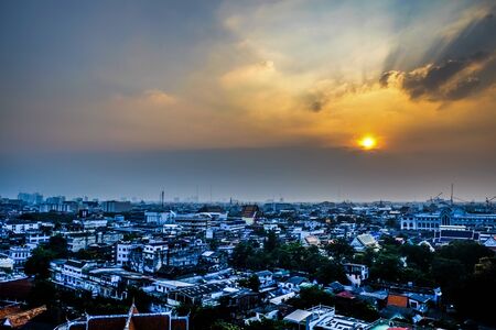 Bangkok cityscape with sky and horizontal line background from golden mountain Bangkok, Thailand
