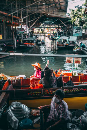 Damnoen Floating Market during covid in Ratchaburi province, Thailand
