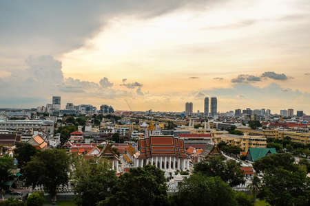 Bangkok, Thailand - July 10, 2020 : Bangkok cityscape from Wat Saket Ratcha Wora Maha Wihan (Wat Phu Khao Thong, Golden Mount temple), a popular tourist attraction