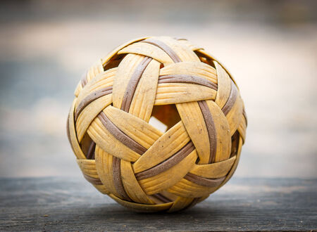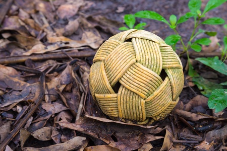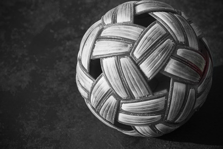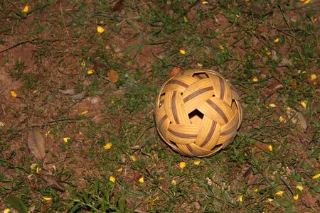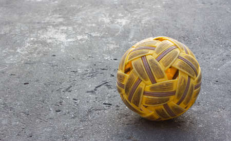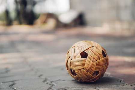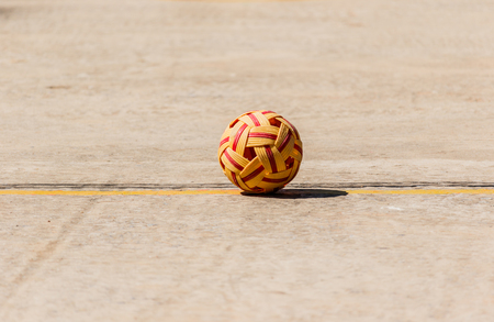 Old sepak takraw ball on concrete courts. Sports Equipment Traditional uses a rattan ball braided,Currently used Plastic ball, Rattan ball popular sport in asia