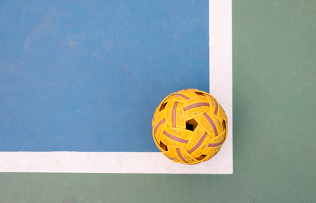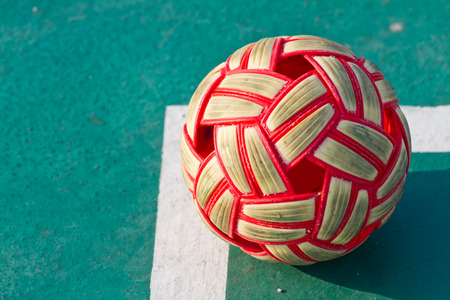 Sepak Takraw ball or rattan ball on field of sepak takraw court on sport outdoors