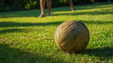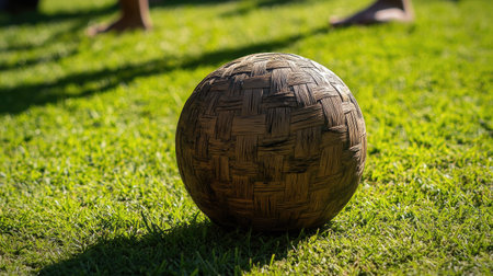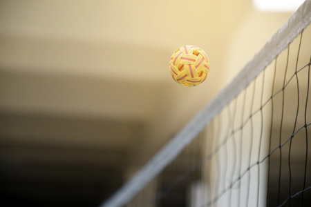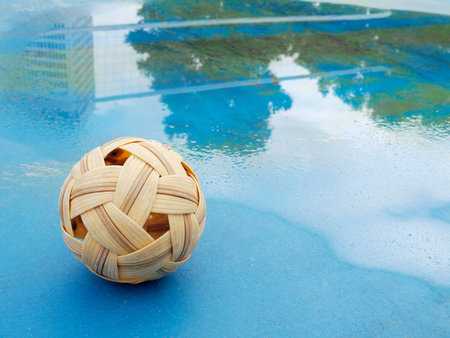Sepak takraw ball, popular sport of southeast asian countries, soft and selective focus, outdoor sport and recreational activity concept.