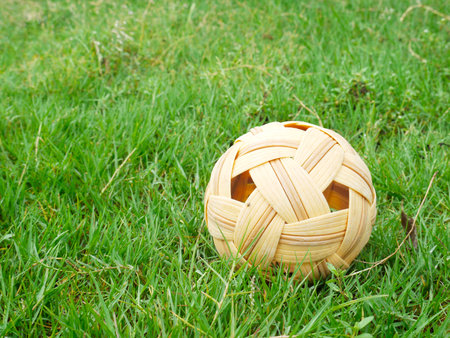 Sepak Takraw asia sport in court / rattan ball or takraw ball on green grass meadow