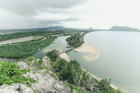 viewpoint of pranburi river on mountain background,thailand