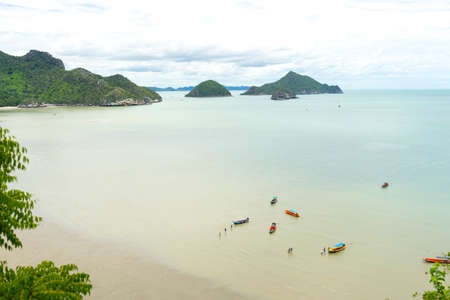 Panorama scenatic view of seascape with trsditional fishing boat and beautiful blue ocean South East Asia Thailand