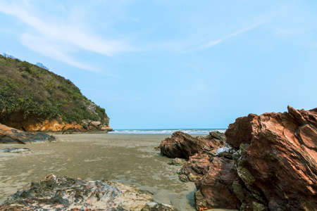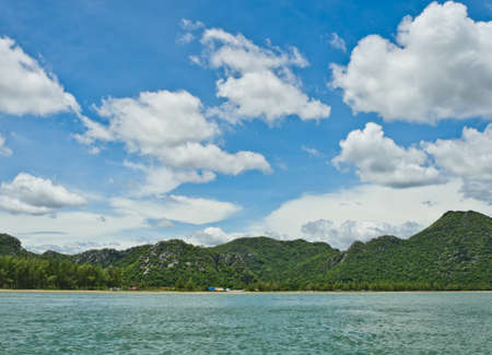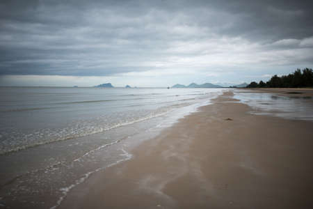 Beach, sea and mountain in cloudy day. Beach in Prachub Kirikan, Thailand