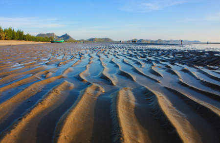 Huahin beach with reflection of sky, Thailand