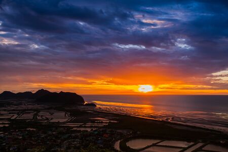 Panorama landscape of fisherman village at dusk in Prachubkeereekhan Thailand