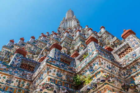 The pagoda of Arun Temple colorful historical porcelain Pagoda of Wat Arun Temple of Dawn, Bangkok, Thailand