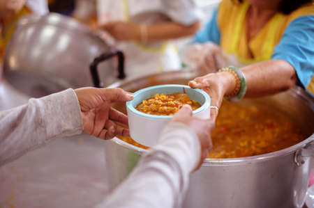 The Society of Sharing Food to Homeless and the Poorest: The Concept of Feeding : The hands of the rich give food to the hands of the poor