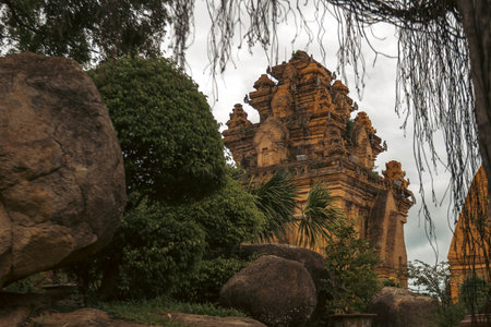 Old Brick cham towers in Nha Trang, landmark Vietnam. Asia Travel concept. Journey through Vietnam Concept.