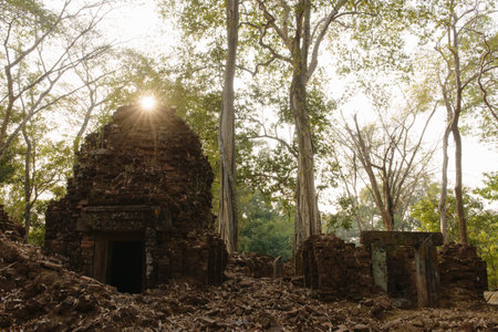 Sunlight over temple ruin, Prasat Thom, Koh Ker, Cambodia