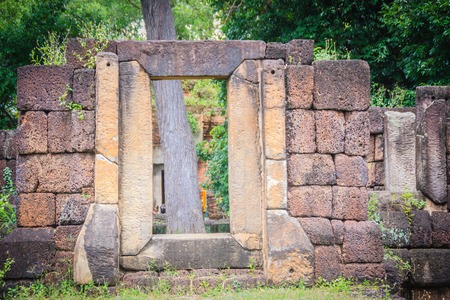 The ancient temple Wat Kamphaeng Laeng is surrounded by a wall made of huge sandstone blocks, most of which is still standing. In the wall were gopura, gates giving access to the grounds.