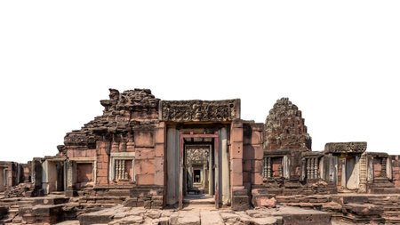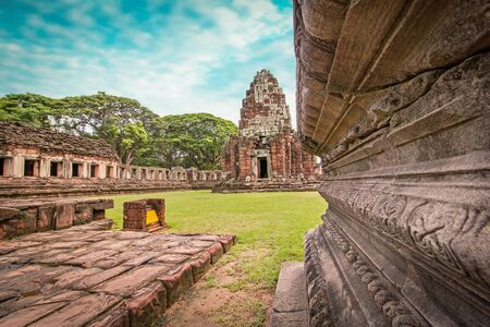 Ruins of the Hindu temple in the Phimai Historical Park in Nakhon Ratchasima, Thailand. It is one of the most important Khmer temples in Thailand.