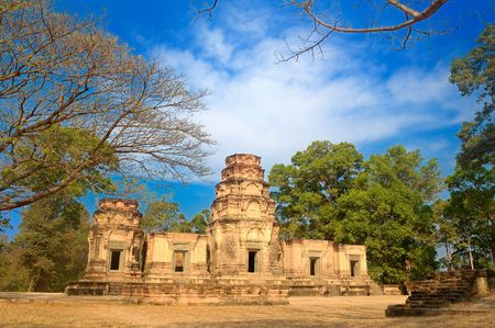 Temple near Angkor Wat with nice blue sky in Cambodia